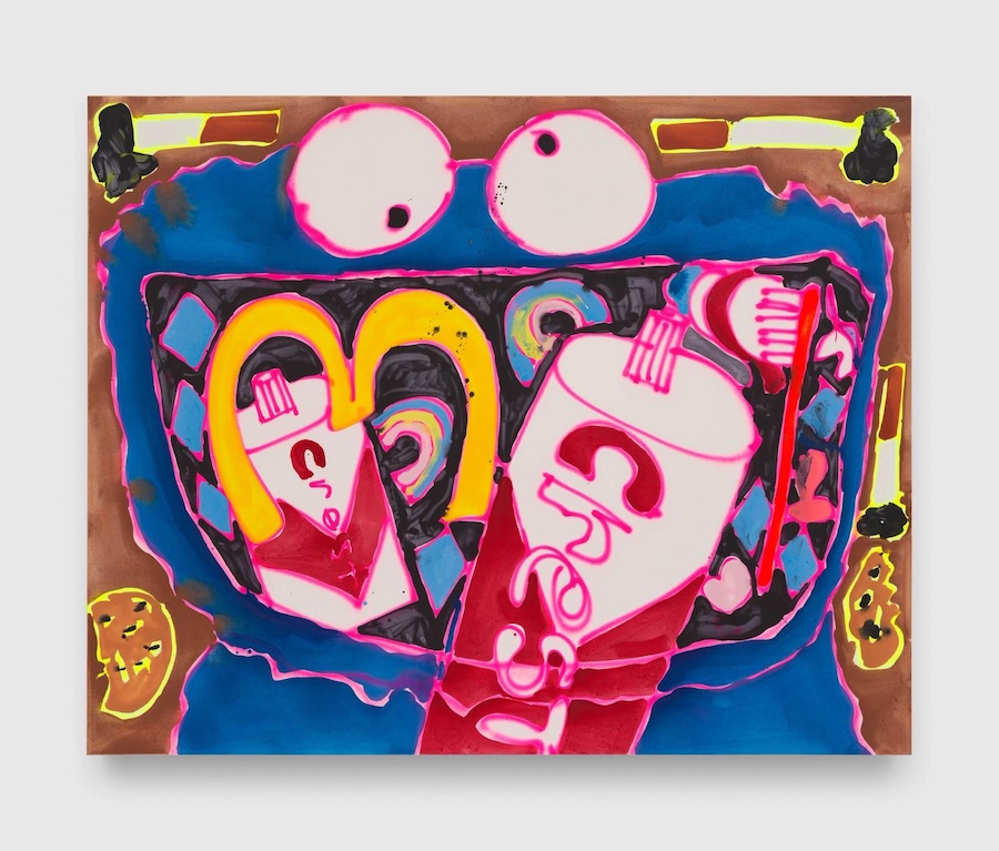 And that brings me to Katherine Bernhardt, who opened the new solo show at David Zwirner in LA with her raw mash-ups of pop cultural iconography. She paints Garfield, ET, Cookie Monster with a childhood wonder, enlarging their personas to double human size, like doubling down the imprint these cartoon characters have had on our lives. Marshmallows and sticks of butter are here, too. There is a sense of joy and also an almost madness of culture, an intensity of cartoon imagery that is surreal and almost twistingly bizarre. After school cartoons were an acceleration of adrenaline that wasn't found in the classroom, a sugar-fueled escape that literally sold you sugar. Bernhardt paints butter like it is as vital to our memories as Sesame Street. It's irreverent and it's pop. —Evan Pricco